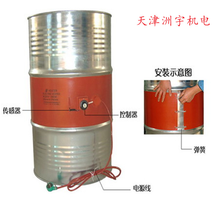 通過加熱使桶內(nèi)的液體、凝固物容易取出,如桶內(nèi)的粘接劑、油脂、柏油、油漆、石蠟、油和各種樹脂原料,通過桶體加熱,使其粘度下降均勻,減輕泵的功力.因此,此裝置不受季節(jié)影響可常年使用。發(fā)熱體是由銅鎳合金絲圍繞著一條小直徑的玻璃纖維核心,置入兩片玻璃纖維織布之間。配上彈簧助易安裝,并配有調(diào)溫器,可逐步從30℃調(diào)節(jié)至150℃。加熱或保持圓桶的溫度可使用一、二或三條電加熱帶。現(xiàn)貨標(biāo)準(zhǔn)類型:200公升圓桶。